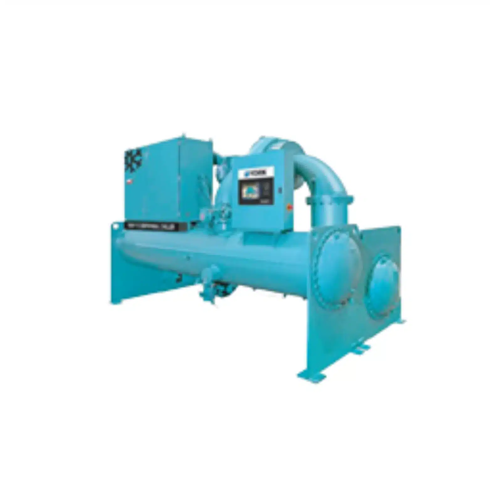 Unique Features: Premium-efficiency water-cooled screw chiller, Microprocessor w/ 7″ touch control panel, hybrid falling-film evaporator.